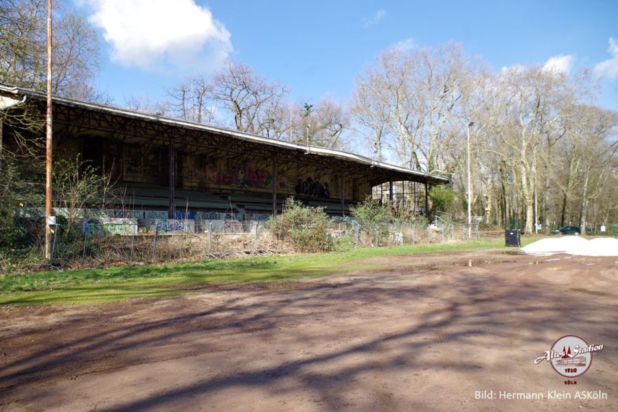 Einst eines der größten und modernsten Fußballstadien seiner Zeit, ist das Areal heute eingezäunt und für die Öffentlichkeit nicht mehr zugänglich. Der älteste Fußballverein Kölns, der VfL, ist längst auf die wenige hundert Meter entfernte Bezirkssportanlage Weidenpesch umgezogen. Seitdem liegt das Alte Stadion brach. Schlimmer noch: Die 1920 errichtete Tribüne modert verlassen vor sich hin, Deutschlands älteste Fußballtribüne ist in keinem guten Zustand. Heute sind die Seitenfenster kaputt, selbst die Graffiti blättern ab und die Sitzbänke sind mit einer dicken Schicht Schmutz überzogen. Nichts deutet mehr darauf hin, dass sich hier einmal bis zu 16.000 Fußballfans versammelten und ihre Helden des VfL Köln anfeuerten – zum Beispiel bei der Einweihung des Stadions gegen Sparta Prag.