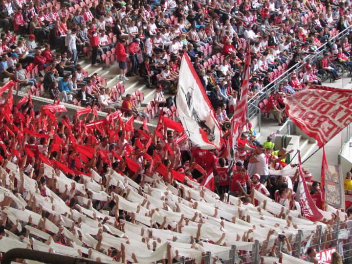 - Schon mal gefragt, warum so viele Leute Traditionsteams so viel geiler finden als Plastikvereine? Einfach mal die Stimmung der beiden Sonntagsspiele vergleichen. Dort: Der amtierende DFB-Pokalsieger, der sich vom Support her deutlich der Eintracht aus Frankfurt geschlagen geben musste. Hier: Zwei Teams, die letzte Saison eher gegen den Abstieg spielten, die sich nun aber nicht nur einen packenden Schlagabtausch auf dem Rasen, sondern auch auf den Rängen lieferten. Die Stimmung in der Mercedes-Benz-Arena? Auf Spitzenniveau. Der Kölner Support dabei wieder einmal sehr stark!