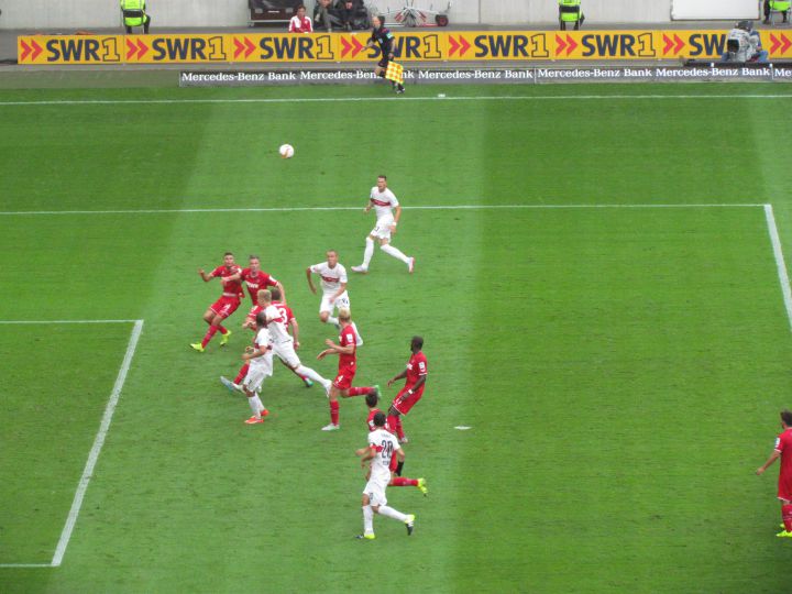Noch bevor einer der unglaublichen Spieler des Geißbockklubs einen Fuß auf den Rasen der Mercedes-Benz-Arena gesetzt hatte, war völlig klar, dass an diesem letzten Spiel des ersten Spieltags ein ganz anderes Auswärtsspiel auf den effzeh wartete als vor einer Woche im beschaulichen Meppen. Statt Kaffee und Kuchen waren Energydrinks und Power-Riegel angesagt. Statt Alawie und Born (so hießen diese Stürmer von Meppen) warteten nun Ginczek, Kostic, Harnik oder Didavi auf die kölsche Mauer, die aber gerade im Zentrum eben nicht mehr aus den Pfeilern Wimmer und Maroh, sondern aus Dominique Heintz und Frederick Sörensen bestand. Hörte sich nach Härtetest an, sollte auch ein Härtetest werden.