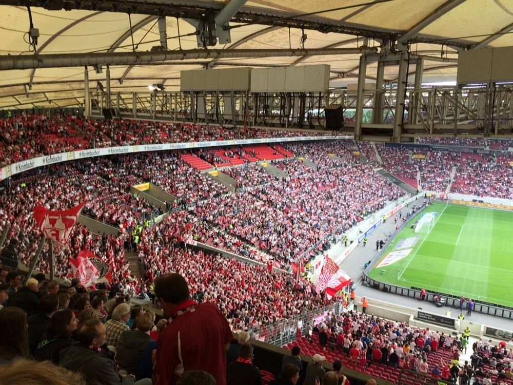 - Schon mal gefragt, warum so viele Leute Traditionsteams so viel geiler finden als Plastikvereine? Einfach mal die Stimmung der beiden Sonntagsspiele vergleichen. Dort: Der amtierende DFB-Pokalsieger, der sich vom Support her deutlich der Eintracht aus Frankfurt geschlagen geben musste. Hier: Zwei Teams, die letzte Saison eher gegen den Abstieg spielten, die sich nun aber nicht nur einen packenden Schlagabtausch auf dem Rasen, sondern auch auf den Rängen lieferten. Die Stimmung in der Mercedes-Benz-Arena? Auf Spitzenniveau. Der Kölner Support dabei wieder einmal sehr stark!