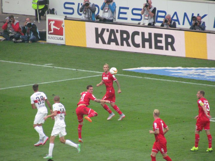 Noch bevor einer der unglaublichen Spieler des Geißbockklubs einen Fuß auf den Rasen der Mercedes-Benz-Arena gesetzt hatte, war völlig klar, dass an diesem letzten Spiel des ersten Spieltags ein ganz anderes Auswärtsspiel auf den effzeh wartete als vor einer Woche im beschaulichen Meppen. Statt Kaffee und Kuchen waren Energydrinks und Power-Riegel angesagt. Statt Alawie und Born (so hießen diese Stürmer von Meppen) warteten nun Ginczek, Kostic, Harnik oder Didavi auf die kölsche Mauer, die aber gerade im Zentrum eben nicht mehr aus den Pfeilern Wimmer und Maroh, sondern aus Dominique Heintz und Frederick Sörensen bestand. Hörte sich nach Härtetest an, sollte auch ein Härtetest werden.