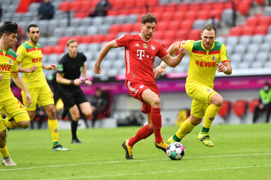 Gegen den Champions-League-Sieger aus München hatte der FC von Anfang an Schwierigkeiten damit, die Gastgeber nicht zur Entfaltung kommen zu lassen. Bereits nach wenigen Minuten hatten die Kölner Defensive mehrere Fehlpässe gespielt, die in Ballverlusten in der eigenen Hälfte mündeten. Ein Abschluss von Leroy Sané eröffnete die Partie in der neunten Minute, danach verpasste Niklas Süle per Gewaltschuss die Führung. Die besorgte dann Eric-Maxim Choupo-Moting nach einer Flanke von Leon Goretzka nach 18 Minuten. Nach 33 Minuten erhöhte Weltfußballer Robert Lewandowski auf 2:0, erneut war Goretzka der Passgeber.