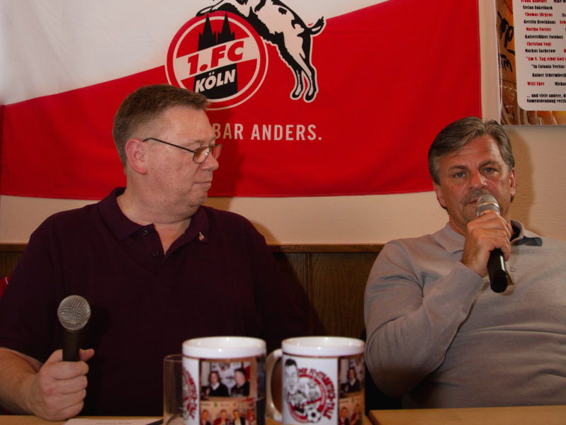 Zusammen mit dem ehemaligen FC-Spieler Falko Götz und Sky-Reporter Marco Wiefel, Walther Boecker (stellvertretender Vorsitzender des Mitgliederrats) sowie FC-Fan und -Blogger Axel Goldmann diskutierte der Gastgeber über die Spielabsage in Duisburg, die aktuelle Tabellensituation des 1. FC Köln, die sportliche Perspektive und auch die vereinsinterne Querelen der vergangenen Wochen.