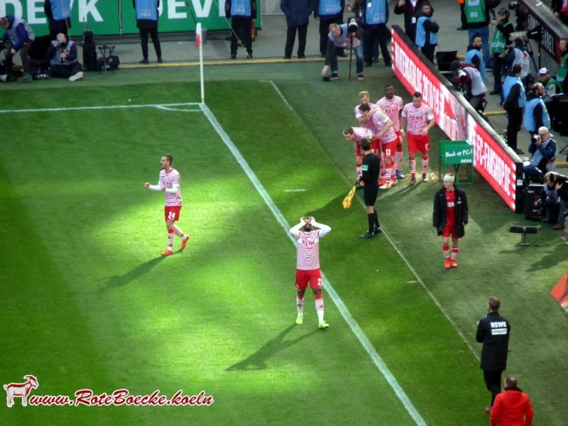 Mit 0:1 ging es also in die Pause und es blieb festzuhalten, dass der effzeh hinten sehr anfällig war und sehr wenig Ideen im Spiel nach vorne entwickelte. Zu Gute halten durfte man den Geißböcken, dass sich vor allem die Aufstellung in der Abwehr aufgrund von Verletzungen und Krankheiten sowie der Sperre von Czichos nahezu von selbst ergab. Die Sandhäuser verteidigten geschickt und ließen auch keine Standards im gefährlichen Bereich zu. Es bahnte sich eine sehr zähe und kampfbetonte zweite Hälfte an.