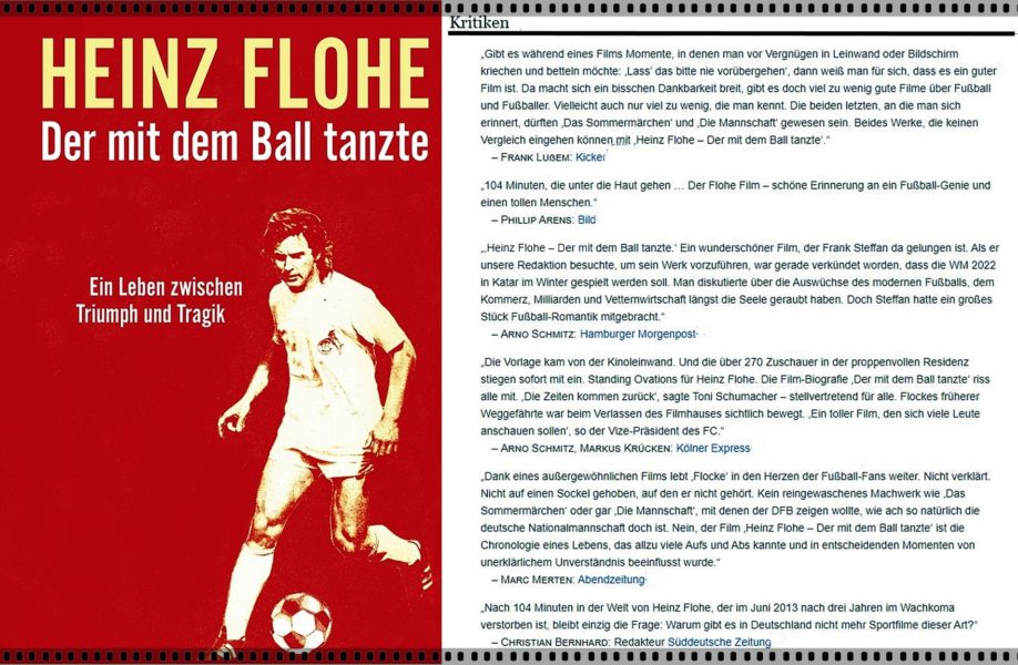 “Der mit dem Ball tanzte” erzählt die Lebensgeschichte des filigranen Fußballers, der 2013 nach drei Jahren im Wachkoma im Alter von 65 Jahren verstarb, chronologisch. Der Film, federführend produziert durch Frank Steffan (Regie) und John Seidler (Kamera/Co-Regie), setzt sich einerseits aus Spielszenen zusammen, die Flohes hohe Fußballkunst im Trikot der deutschen Nationalmannschaft, des 1. FC Köln und von 1860 München zeigen, andererseits kommen zahlreiche Mitspieler, Freunde und Weggefährten aus heutiger Sicht ausführlich zu Wort. Beim internationalen Fußballfilm-Festival “11mm” in Berlin wurde “Der mit dem Ball tanzte” in der Kategorie “Publikumspreis” zur besten deutschen Produktion gewählt.