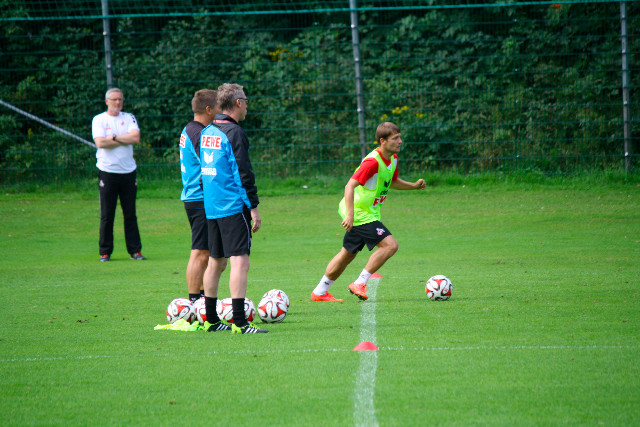 Im Angriff setzt Yuya Osako bereits erste Akzente. Der japanische WM-Teilnehmer ist zwar noch nicht bei 100 Prozent, allerdings ist der Stürmer ein Spielertyp, der dem effzeh so noch nicht zu teil wurde. Osako bleibt nicht nur im Zentrum, sondern arbeitet gut zurück und weicht häufiger aus. Dasselbe gilt auch für Simon Zoller, dem allerdings in der Sturmspitze noch nicht ganz die Bindung zur Mannschaft fand. Doch der Ex-Lauterer, für knapp drei Millionen Euro ans Geißbockheim gekommen, ist ein Kämpfer und konnte heute im Training seinen guten Abschluss präsentieren.