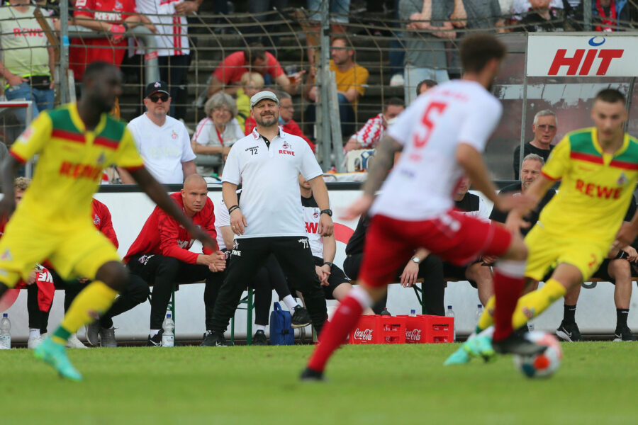 Stimmungsvoll endete das Debüt von Steffen Baumgart als Trainer des 1. FC Köln: Bei einer Ehrenrunde nach dem 4:0-Erfolg bei Fortuna Köln wurden die „Geißböcke“ lautstark von den anwesenden Zuschauern gefeiert – 4.100 Fans waren für das freundschaftliche Duell der kölschen Lokalrivalen ins Südstadion gekommen. Das deutliche Resultat, das Jan Thielmann (37.), Mark Uth (54.), Tim Lemperle (70.) und Dominick Drexler (83.) durch ihre Treffer herstellten, war zweifellos zweitrangig. Das freudige Erlebnis eines Fußballspiels mit Anhänger*innen auf den Tribünen stand im Vordergrund.