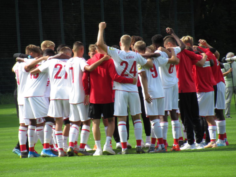 Das Thermometer zeigte angenehme 23 Grad an, der kräftige Südwestwind wehte die letzten Reste der Gluthitze des Sommers von den Grünflächen des RheinEnergieSportparks weg, und so nutzten mehr als 300 Schaulustige die Gelegenheit, das Angenehme mit dem Nützlichen zu verbinden und sich den ersten Pflichtspielauftritt des frischgebackenen deutschen U17-Meisters im Derby gegen die Altersgenossen von Bayer Leverkusen anzuschauen.